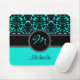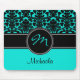Este mousepad monogrammed moderno e na moda do azul de turquesa, do preto, e o branco da cor damasco tem as caixas do modelo para você personalizar com seu próprio nome, iniciais, monograma, ou o outro texto. Se você precisa alguma ajuda que personaliza este mousepad na moda, envie por correio electrónico por favor niteowlstudio@gmail.com.