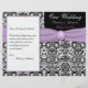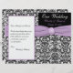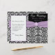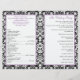 Este programa de casamentos tema damasco preto e branco tem uma fita roxa de lavanda IMPRESSA e um botão com monograma IMPRESSO. Ele foi projetado para ser dobrado pelo centro. ****POR FAVOR, OBSERVE que o papel de mais alto é um estoque de cartão e não se dobra bem. Se precisar de ajuda para personalizar isto com as suas próprias informações, envie um e-mail para niteowlstudio@gmail.com para obter assistência.