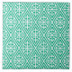 Um azulejo de padrão têxtil de Arte Nouveau, medieval Cross damask, em turquesa/pavão, sobre fundo branco