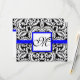 Damasco de Flor Preto com RSVP de Cartão RSVP de Trim Azul Real RSVP de Casamento Monograma