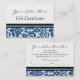 Certificado de presente customizável do salão de beleza, dos termas ou do cabeleireiro em azuis marinhos escuros elegantes e bonito, cor damasco floral clássica preto e branco. Personalize com seu próprio texto para um certificado de presente personalizado para seu negócio. Contacte-nos para pedir uma cor feita sob encomenda ou uns produtos de harmonização para sua empresa.