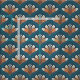 Damasco Laranja e Branco no Tecido Azul