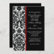 Elegante e inspirando, este convite clássico do casamento é criado no damasco preto e branco com um acento vermelho. Este convite do casamento é perfeito para um casamento formal. Os cartões salve a data de harmonização, resposta, recepção, sentido e agradecem-lhe cardam estão igualmente disponíveis.
