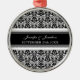 Ornamento customizável do casamento na cor damasco floral clássica preto e branco elegante e moderna. Aperfeiçoe como uma lembrança do Natal para recordar seu dia especial ou para comemorar seu primeiro Natal ou como favores wedding personalizados.