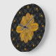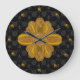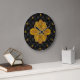 Relógio de parede em preto na cor damasco floral preta. Gráficos elegantes de pernos de ouro representam os números, em volta da borda, e uma adorável decoração em estilo Art Deco com tom dourado no meio do relógio. Personalizar para adicionar texto. Um relógio bonito para qualquer quarto da casa ou do escritório.