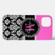 Tendy Girly Black and White Cor damasco Monograma com Cor de Destaque Rosa Quente. Design por Elke Clarke ©. Outros estilos e cores disponíveis em nosso compro em www.zazzle.com/DamaskGallery
