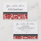 Certificado de presente customizável do salão de beleza, dos termas ou do cabeleireiro no vermelho elegante e bonito, cor damasco floral clássica preto e branco. Personalize com seu próprio texto para um certificado de presente personalizado para seu negócio. Contacte-nos para pedir uma cor feita sob encomenda ou uns produtos de harmonização para sua empresa.