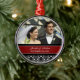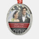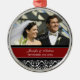Ornamento customizável do casamento da foto no vermelho elegante e moderno, cor damasco floral clássica preto e branco. Aperfeiçoe como uma lembrança do Natal para recordar seu dia especial ou para comemorar seu primeiro Natal ou como favores wedding personalizados.