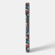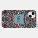 Damasco vermelho, branco e azul elegante com caixa iPhone 14 Plus monograma, ideal como preenchimento de estoque ou presente de aniversário