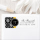 Monograma F Rótulo de Endereço de Retorno de Convite de Casamento com damasco preto e branco e cor de sotaque amarela. Personalize com os detalhes do seu monograma inicial, nome e endereço. Escolha a cor do plano de fundo e a cor do monograma também. Copyright Elke Clarke e Licenciadores.