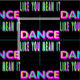 As palavras dançam como você o meio ele nas cores de néon no tecido preto