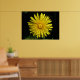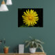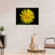 Esta adorável poster floral mostra uma fotografia de uma flor amarela de dandelion. A foto foi tirada usando macro fotografia, resultando em detalhes tão brilhantes que você pode ver as pétalas individuais e as sombras lançadas nelas. Há uma borda amarela ao redor da impressão.