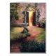 De uma pintura a óleo original por Brenda Thour da luz que brilha de uma entrada aberta em um birdbath e do jardim na noite. Copyright 2005.