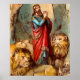 Daniel, no poster do leão, tem Daniel na toca dos leões, com quatro ou cinco leões querendo comê-lo, ele tem um boné vermelho e um vestido azul