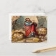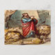 Daniel no cartão-postal do leão tem Daniel na toca dos leões com quatro ou cinco leões querendo comê-lo, ele tem um boné vermelho e um vestido azul