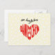 Envie uma rápida nota de agradecimento a um amigo alemão ou conheça este cartão postal de na moda. A design é uma peça sobre palavras usando a expressão alemã "ein herzliches Dankeschön". Isto traduz-se como "um obrigado sincero" (literalmente "um obrigado sincero"). As palavras "ein herzliches" estão num guião negro que flui; Dankeschön está em letras vermelhas, transformado em forma cardíaca. O fundo colorido cremoso tem uma sutil dispersão de corações brancos nele.