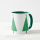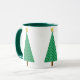 Mug em um moderno simplificado toma um clássico motif da árvore de Natal, em um padrão esmeraldo arabesco verde escura