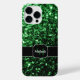 Personalize faux sparkly girly iPhone case with your initial and name. Beautiful girly glamorous green shiny glitter sparkles. Photo of Green sparkles not actual glitters!