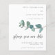 Código QR De Casamento De Script Eucalyptus De Orçamento Salva A Data. Um alternativo de 4,5 pol x 5,6 pol com preço inferior. Disponível em um STOCK DE CARTÃO SEMI-GLOSS 110 lb, que é a opção padrão (mais espesso para convites), OU um STOCK de PAPEL THINNER FINISH 80 lb FINISH (ideal para gabinetes). Adicione seu código QR ao seu site de casamento no verso. Estilo moderno minimalista com um ramo solteiro de folhas de eucalipto azul lacrimogêneo vindas do lado direito e um roteiro informal para Salvar nossa data. personalize facilmente o resto do texto para seus detalhes.