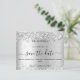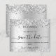 Um moderno e elegante Salve a Data para um casamento. Um fundo prateado falso decorado com brilho falso. Personalize e adicione uma data e nomes. O texto: Salvar a Data é gravado com um script de estilo com letra de tendência grande.