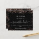 Um moderno e elegante Salve a Data para um casamento. Um fundo preto decorado com rosa faux glitter. Personalize e adicione uma data e nomes. O texto: Salvar a Data é gravado com um script de estilo com letra de tendência grande.
