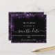 Um moderno e elegante Salve a Data para um casamento. Um fundo preto decorado com brilho roxo. Personalize e adicione uma data e nomes. O texto: Salvar a Data é gravado com um script de estilo com letra de tendência grande.