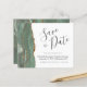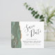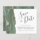 Este elegante orçamento salve a data card apresenta uma cor aquosa verde de sábado, borda agitada, aparada com falso brilho dourado. O texto personalizável combina o script de escrita manual de cinzas de carvão, o copperplate e as fontes itálicas em um fundo branco. O verso apresenta um design verde-sábio e um agate dourado correspondentes.