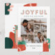 Abstrato gráfico moderno vermelho, rosa + verde e tipografia ousada multicartão com fotos feriado alegre. Com lascas pintadas à mão. Parte de uma coleção de feriados brilhante e divertida.