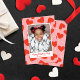 Este Dia de os namorados moderno e doce apresenta um padrão de fundo de pulgões vermelhos do coração, tipografia retrô e uma foto vertical. A parte traseira da placa tem o mesmo plano de fundo, que pode ser removido se desejar. Você também pode adicionar outra foto ao verso e/ou texto adicional ao verso. Este tamanho menor é perfeito para trocas de Dias de os namorados em sala de aula!