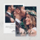 Esta elegante obrigado de casamento que você fez tem uma foto na frente com a capa de texto de mahalo e os nomes dos casais. Perfeito para casamentos tropicais havaianos.