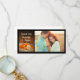 Envie uma nota pessoal de obrigados, apreciação e gratidão com o Casamento outono Rustic Pumpkins Agradece-lhe o Cartão com fotos. Adequado para os presentes recebidos depois de setembro, outubro ou novembro de outono, ou de outono, fazendas rurais do outono, celeiro rústico, rancho ou chá de panela ocidental, tema festa de noivado ou casamento. Este obrigado de tema rústico, personalizado, rancho, você cartões de fotos apresenta uma fotografia floral acinzentada de pequenos abóboros laranja, flores amarelas e vermelhas da margarida, véu branco, lenço vintage aparado com lenço e corta-lenha natural com a palavra LOVE queimado com um fundo de madeira marrom.