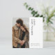 Este Cartão com fotos Moderno e Simples, Obrigado, oferece um equilíbrio perfeito de elegância e simplicidade. O design preto e branco, combinado com uma foto personalizada, cria uma mensagem eterno e sincera para expressar sua gratidão. De dois lados para uma apresentação elegante, esse cartões de agradecimentos minimalista é ideal para quaisquer casamentos com a sensação rústica e na moda. A tipografia limpa e o layout contemporâneo chic fazem dela uma escolha elegante para os casais que buscam uma maneira única de dizer "obrigado você" aos seus convidados. Perfeito para comemorações casuais ou formais, esta carta adiciona um toque romântico e caprichoso à sua apreciação do casamento.