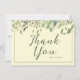 O cartões de agradecimentos de design de casamento moderno apresenta aquarela eucalipto deixa borda em fundo creme com blocos de texto personalizáveis em fontes modernas