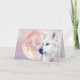 Cartão de saudação com Espíritos Kindred pela artista da vida selvagem Michaeline McDonald, de um lindo lobo branco contra uma grande lua de cheio rosa.