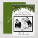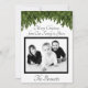 O cartão de Natal "Feliz Natal da Nossa Família para a Sua", em uma fonte elegante, no topo da foto da família branca e preta, com "Os Bennetts" embaixo. Verde de férias pendurado no topo do cartão. Todos os itens são personalizáveis no menu de edição, portanto, torne-o pessoal! Adicione uma foto colorida, altere a fonte e a cor para se adequar a você. Vem com envelope branco.
