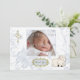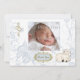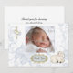 Um belo cartão com fotos com tema cristão com cordeirinha, cruz de ouro com corações em borboleta azul e fundo floral com estrutura de ouro de ornamentado com texto Obrigado. Adequado para batismos, batizados, uniões e confirmações.