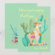Personalize este cartão de agradecimento fofo de lhama. O modelo está configurado para você adicionar seu texto e/ou nome na frente do cartão (onde a amostra diz "com amor Gabrielle". Este cartão verde menta apresenta uma ilustração de lhama e cacto em aquarela com uma linda lhama loira usando uma guirlanda de flores e uma manta de sela. Ela está em pé em meio a um jardim de cactos com flores amarelas. A parte de trás do cartão tem plantas do deserto com muito espaço, caso você queira escrever um bilhete. Por favor, explore nossa loja para encontrar produtos combinando.