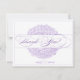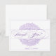 Cartões de agradecimentos com design floral delicado. A mistura do roteiro elegante e do vintage florais cria realmente uma indicação. Mostrado no lilac e no roxo. Contacte por favor o design do vintage de ONimages se você gostaria deste design em outras cores. Visite por favor o design do vintage de ONimages para uma seleção à moda do porte postal do casamento, salvar os anúncios da data, os convites projetados e os artigos de papelaria com um vintage e uma mistura moderna. Design do vintage de ©2010 ONimages. Todos os direitos reservados.