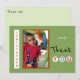 Personalize este aniversário Obrigado cartão com fotos de um garotinho. Projetado em verde, laranja e azul. Adicione sua mensagem no verso ou remova o texto de uma nota escrita à mão.
