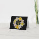 Cartão de nota com obrigado você anel do interior das flores ou personaliza para o vazio. Flores amarelas e brancas no fundo preto.