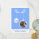 Cartão de saudação plano que você pode adicionar sua foto e escrever sua mensagem no verso. Ranchos de veados e design de ornamento com fundo azul. Correspondência de rótulos de endereço e muito mais neste design.