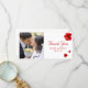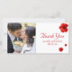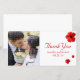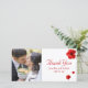Casamento Obrigado cartão com fotos com hibisco vermelho. Adicione sua foto favorita de casamento e seus detalhes da festa. Você pode facilmente alterar a cor, a fonte, o tamanho e a posição do texto clicando no botão personalizar. Você também pode alterar a cor da linha de cinza vertical.