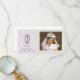cartão com fotos religioso com fundo pastel e cruz ornamentado roxo. Este cartão pode ser personalizado para confirmações, batismos, sindicatos ou outras ocasiões cristãs.