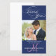 ESCURO AZUL INICIAL SCRIPT CASAMENTO OBRIGADO CARTÃO COM FOTOS. Design por Elke Clarke© para a Galeria de Monogramas. Um belo roteiro de safra é usado para as palavras "obrigado você". A inicial do monograma pode ser alterada e a fonte e a cor também podem ser alteradas. Se quiser uma fonte diferente, você pode escolher entre centenas de fontes no menu editar selecionando "personalizá-la". Excelente de casamentos para um esquema de cores azul e rosa, azul e prateado ou azul e verde limão porque o inicial do monograma pode ser transformado em cor de sotaque. Para obter ajuda sobre outras cores de fundo ou design, entre em contato com luxuryweddinginvitations@gmail.com.