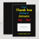 A maneira perfeita de dizer obrigado a seu pai. Este na moda mostra a mensagem 'Obrigado por ser um pai Passo Fantástico' - Você pode personalizar cada linha de acordo com seu requisito. Em amarelo, azul, vermelho e preto, essa tipografia da na moda faz um título moderno e atraente. Basta anexar seu próprio cartão-presente escolhido para um excelente de dizer obrigados.