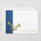 Azul escuro com trompetes dourados com cartão plano obrigado você para elogiar convites.