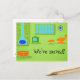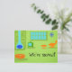 Este Meio século personalizável Moderno de Alteração Retroativa do Cartão Postal de Endereço fará com que você quebre suas cadeias de pérolas para realizar as tarefas mais comuns. O design da frente apresenta um fundo verde limão com a silhueta de uma lareira de cone azul, um televisor de tubo clássico verde (completo com orelhas de coelho), uma cadeira de salão laranja e as pegadas, um relógio azul, estelar e um otomano laranja com pernas afuniladas. Basta clicar no ícone "Personalizar" para substituir o texto existente pelo seu. É uma cena para uma pessoa moderna experiente em computador como você! Home Sweet Home acabou de ficar muito mais doce!