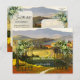 Um original cartão postal Salvar Data com uma pintura de arte fina de uma paisagem italiana em cores festivas.