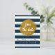 Cartão Postal Blue Striped & Gold Foil Save The Date. Itens correspondentes disponíveis.