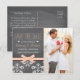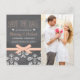 Adicione sua foto de noivado favorita a estes belos e românticos cartões de anúncio de casamento em estilo vintage com renda antiga e fita e laço coral e pêssego e quadro-negro. Adicione sua história de amor ou mensagem especial para seus convidados no verso. Criado por Chrissy H. Studios, LLC. Todos os direitos reservados.